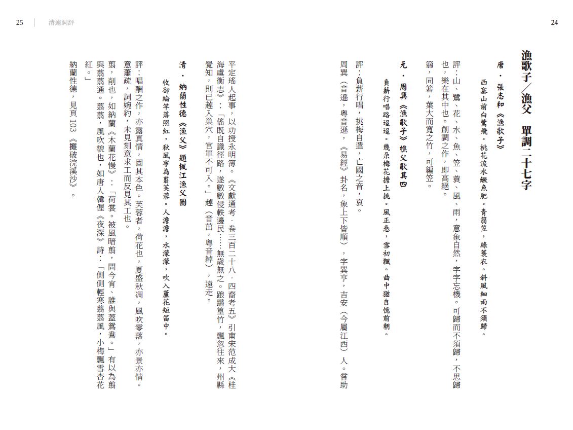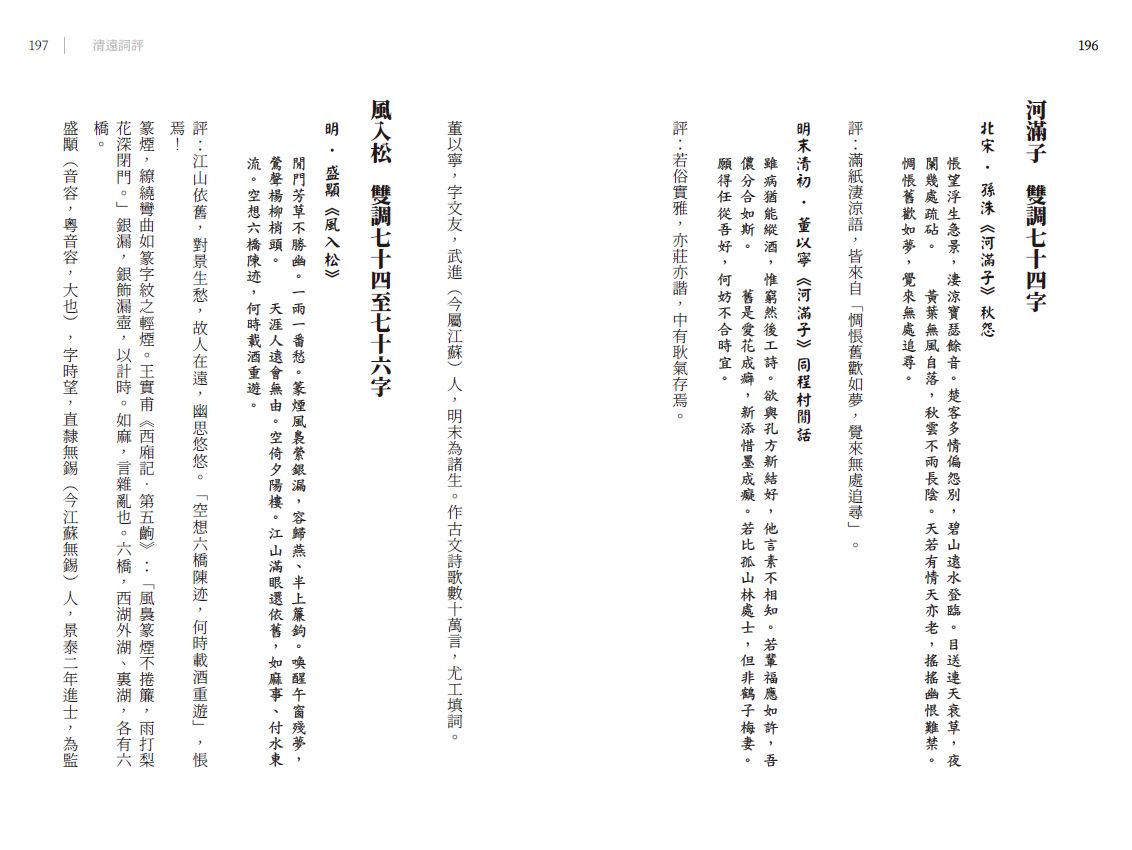 • 內容編排按曲調鋪陳,再附註釋和詞人小傳,加深對讀者的對詞的認識。