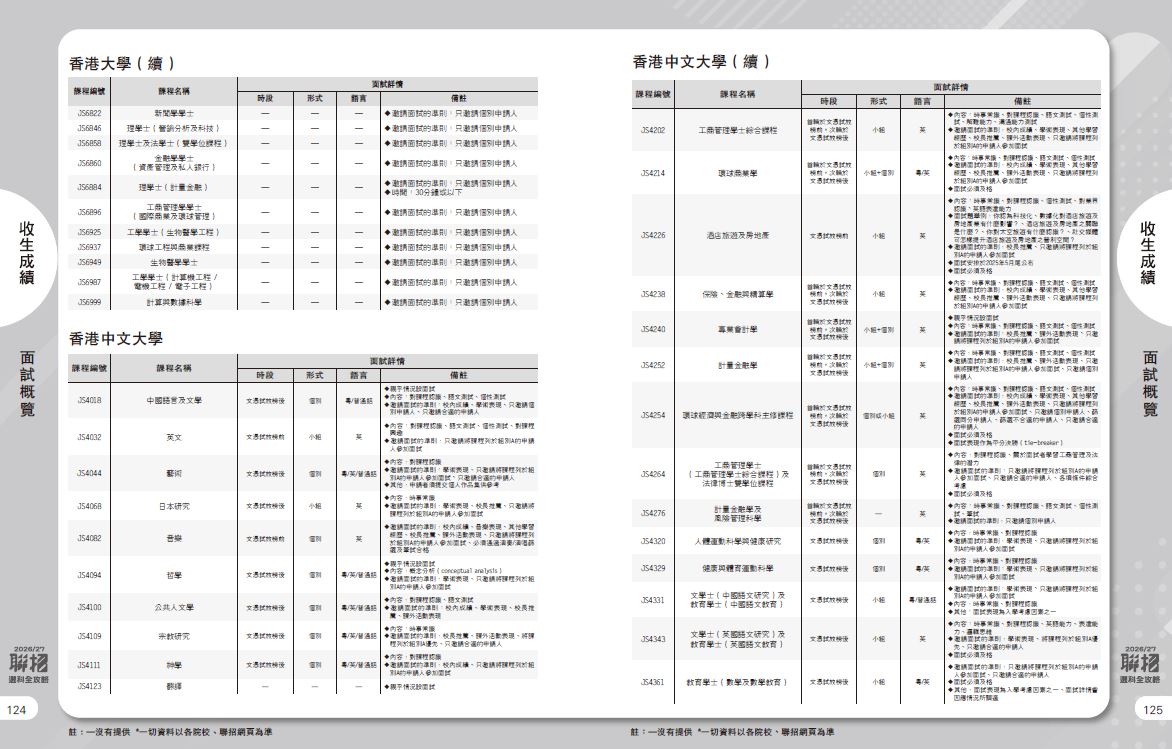 詳盡課程概覽:詳列各聯招課程去年收生成績、面試資料、入學要求等